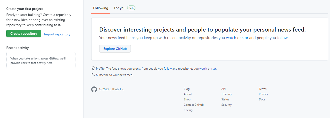 - After successfully setting up GitHub account, login to your account. You will see the screen as below.