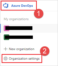 - Choose Azure DevOps, Organization settings.