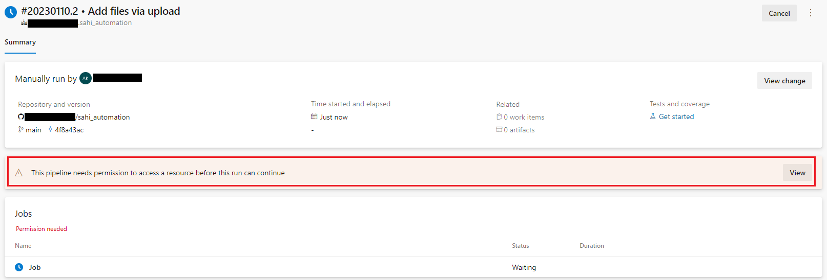 - Click on Run pipeline and then click on Run.