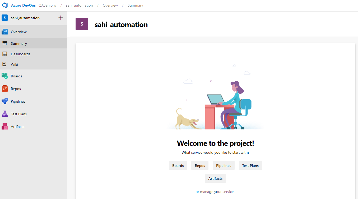 - Click Create project button. Navigated to Welcome page.