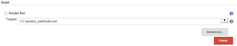 -f C:/jenkins_sahi/build.xmlin the ANT target textbox.