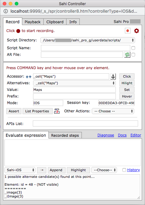 Evaluate expression box, make sure Sahi-IOS is selected in the Controller.info