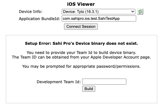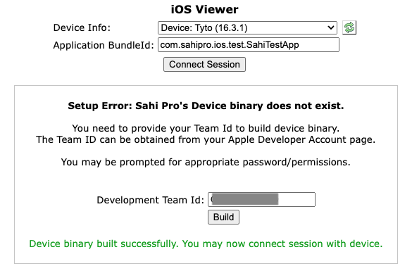 Connect Sessionbutton. - If the device binary does not exist then It will ask to build the device binary in iOS Viewer.