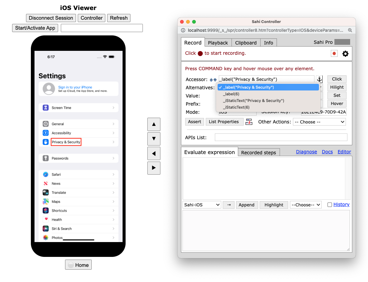 iOS Viewer allows an end user to view the iOS device/simulator screen on a Mac browser. The user can launch the Controller and then identify iOS elements by