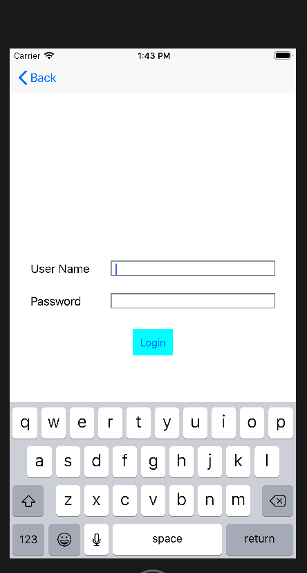 info- If you see the keyboard appearing, toggle the keyboard twice by clicking on [Hardware->Keyboard->Toggle Software Keyboard] from the Simulator app menu twice. This will first hide the keyboard and show it again.