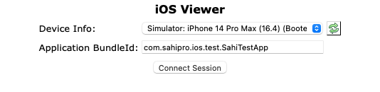 Connect Sessionbutton. - This will start the SahiTestApp application on the Simulator, and the iOS Viewer will display the screenshot of the application.