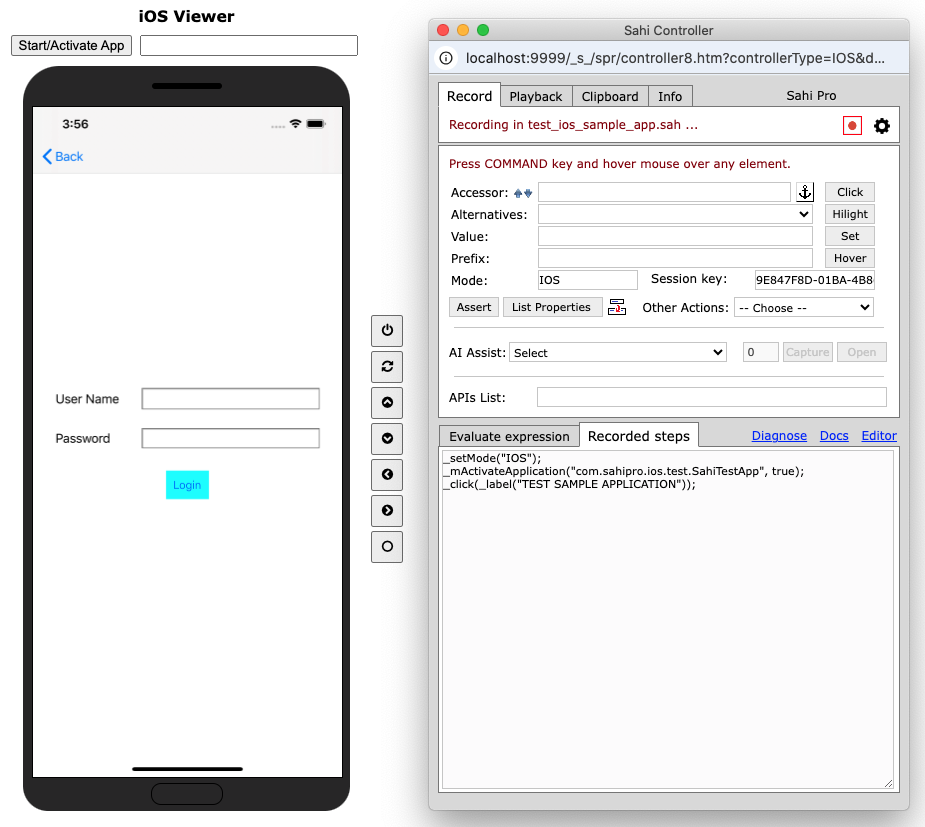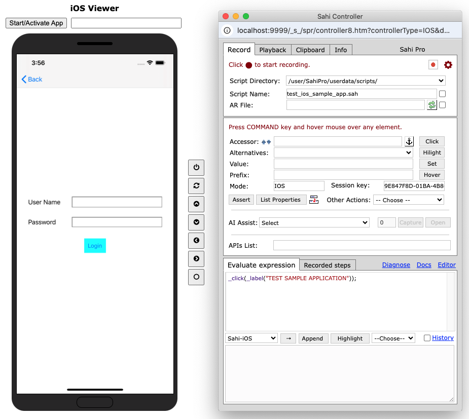 This tutorial involves automating a sample app on an iOS simulator.Sahi Pro Mobile Add-on ships with a few iOS Test Apps.