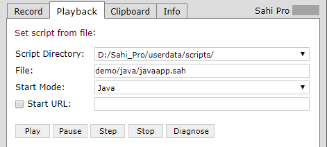 - For script playback in Controller Playback tab, select Start Mode as "Java" before "Play".