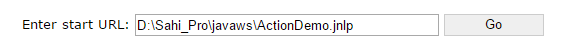 - Enter jnlp application path in the space provided for "start URL" and click "GO" , to start the application