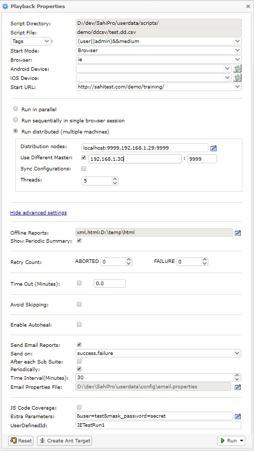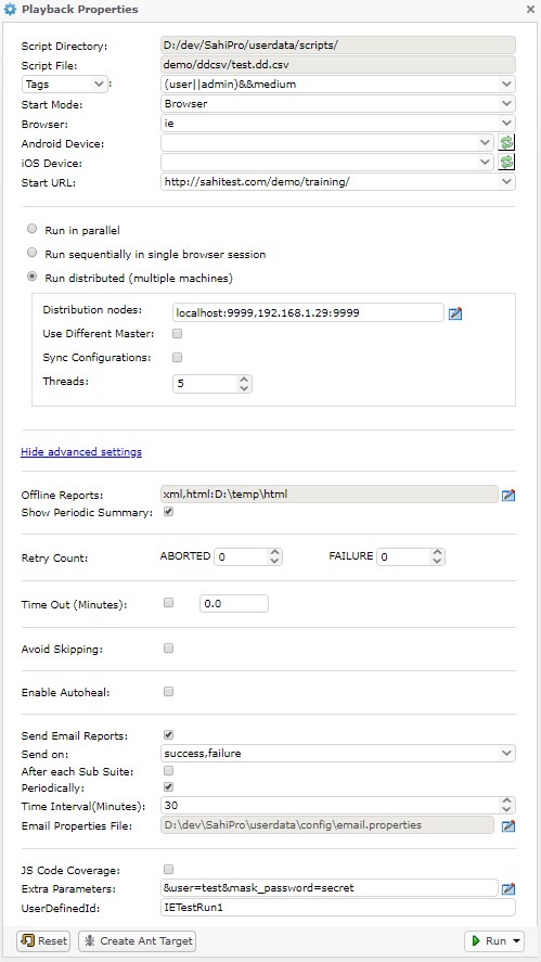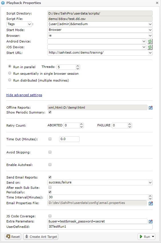 This section describes playing back Sahi scripts via Apache Ant.