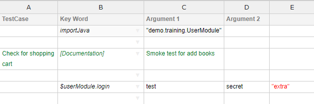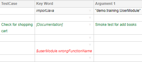 The SpreadSheet UI notifies the user about mistakes by marking problematic cells in red color.If the user adds a wrong function, i.e. a function that is not defined in the included files, or if he makes a mistake with the function name, the name appears in red. Only if the function is defined in the file included through 'importJava', does it appear in black.