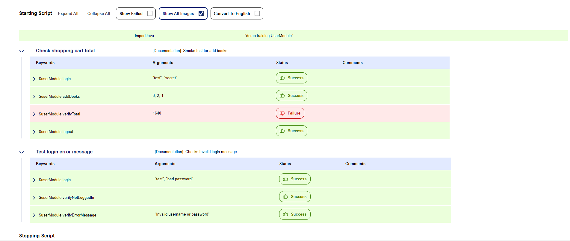 | Data Driven Example | [Keyword] | $userModule.addBooksAndVerifyTotal | | | |