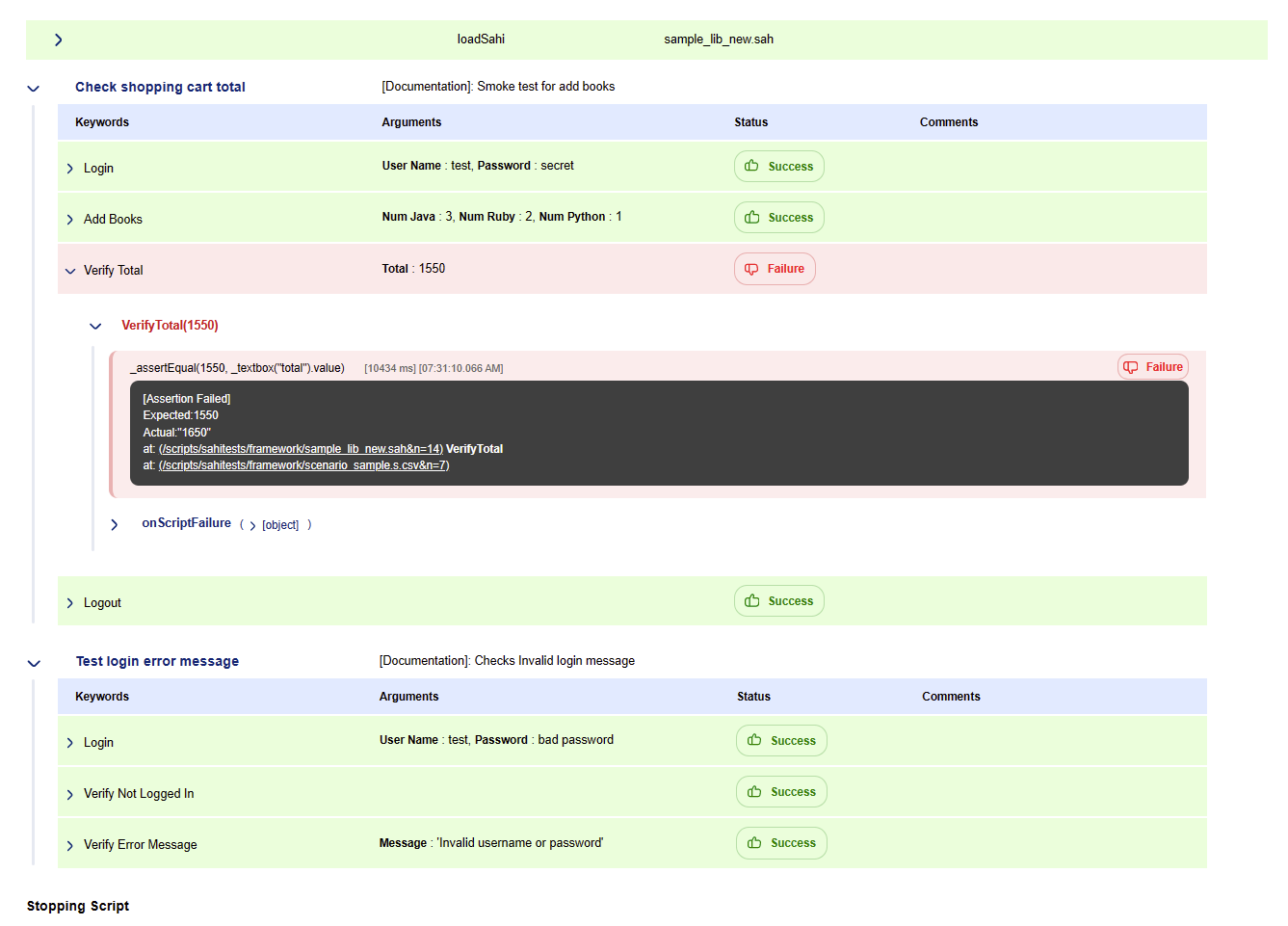 Executing the Scenario file is no different from executing a Sahi script.