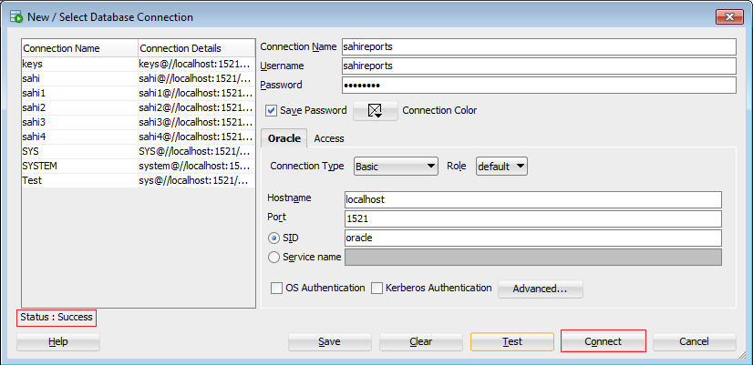 Create a database connection in Oracle using any Oracle client (Oracle SQL Developer). Let us assume that the name of the database connection is sahireportsTo achieve database connection to sahireports follow the below steps,